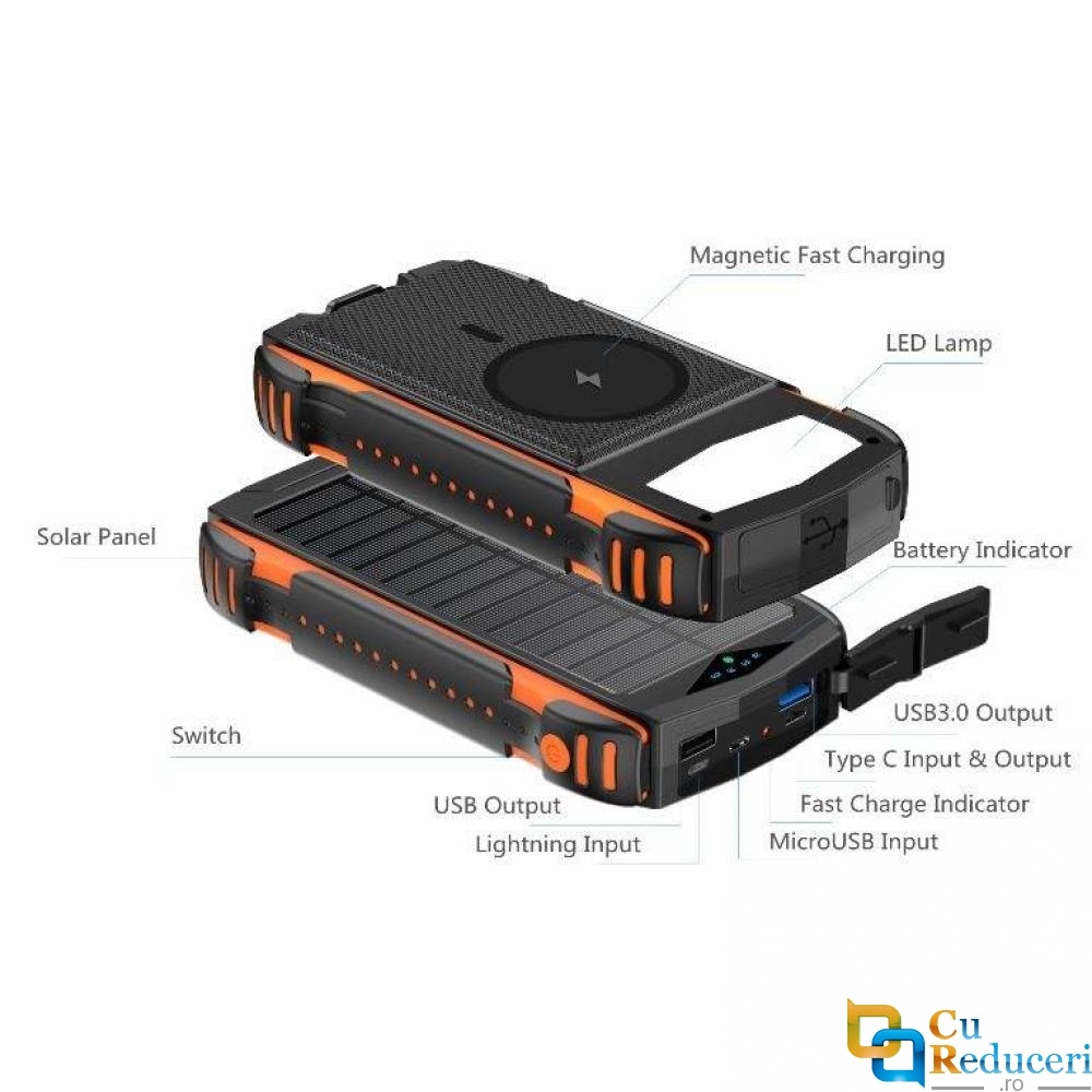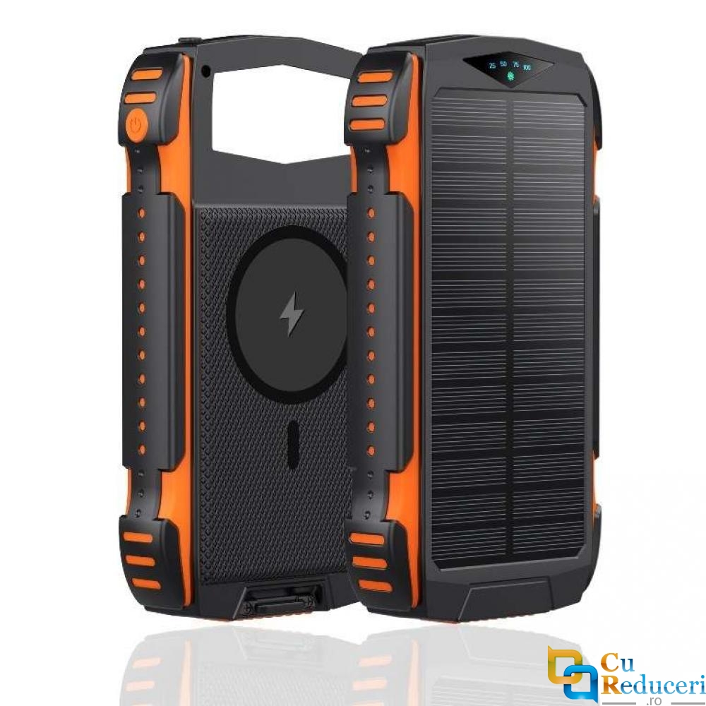 Baterie externa Power Bank, cu Incarcare Solara, 20000 mAh, 2 sloturi