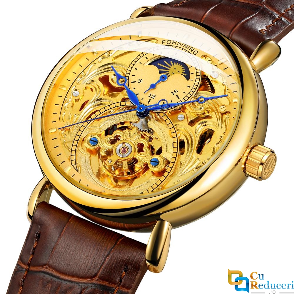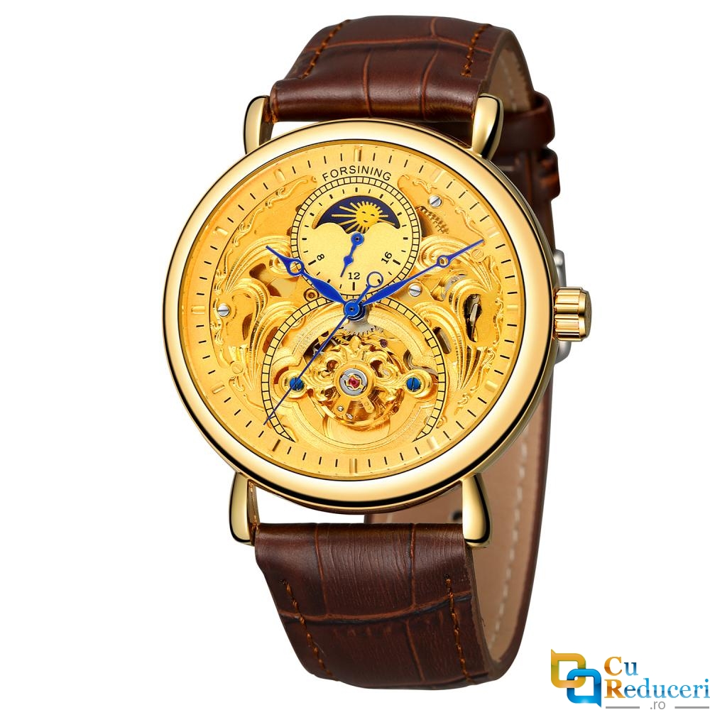 Ceas barbatesc Forsining cu Moon Phase (arata noapte/zi), curea din