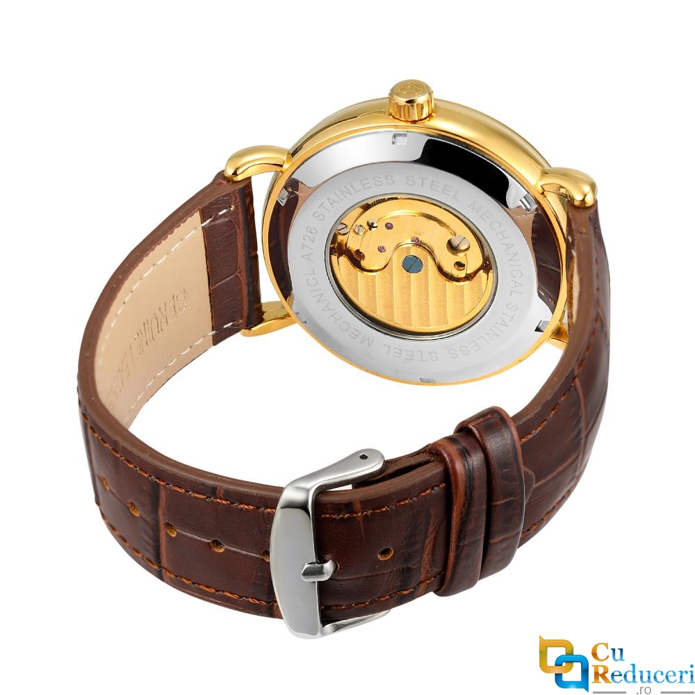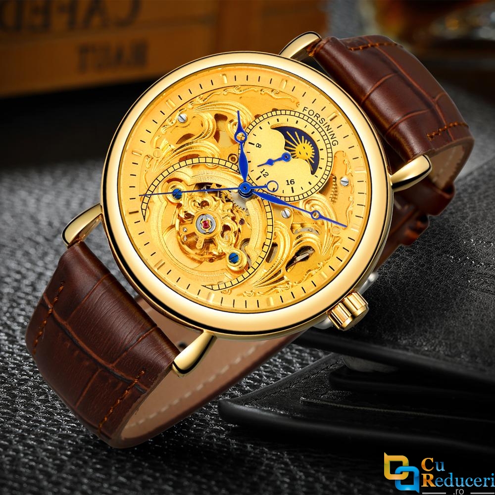 Ceas Forsining schelet barbatesc automatic Gold, bratara din otel